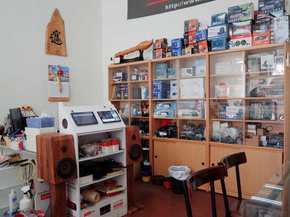 店面占地雖不大但是備品相當齊全,設有1個施作工位,提供汽車影音專業安裝、影音升級、喇叭升級和行車紀錄器安裝等服務。